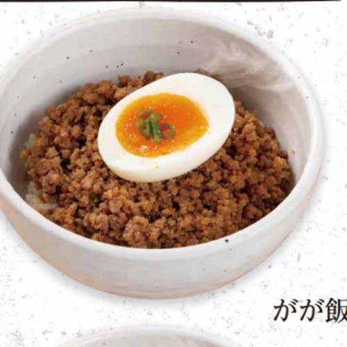 初めてだったので醤油つけ麺ラーメン中盛り+卵トッピング+がが飯(そぼろ肉・半熟卵)を頼みました。